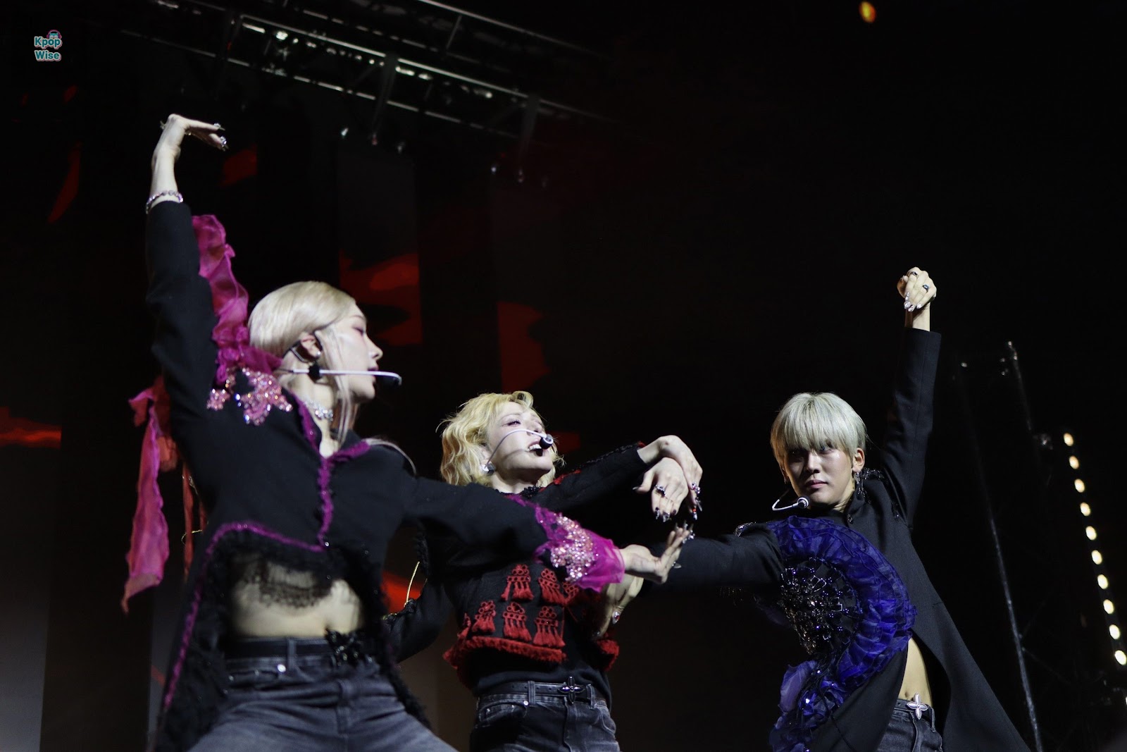 They concluded the "battle" and jumped to perform "BIZNESS", which took the crowd on a sharp turn with the dance-heavy beat and iconic swishing skirt choreography. "Scent" followed and slowed the pace to a sexier, more dreamlike wavelength, with the lighting following suit and shifting to hazy purples and pinks that reflected off Troxy’s ornate ceiling.