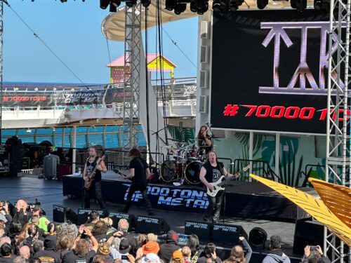 After tub time, we caught Tyr on the pool deck as they brought Faroian thunder to the high seas. Their burly sound translated well to the setting, and it was all beefy tales of heroism and swordplay, with “By the Sword in My Hand” and “Blood of Heroes” hitting extra hard. It was extra cool to see Jag Panzer’s Mark Briody right up front in the crowd, throwing horns and celebrating the next generation of metal.