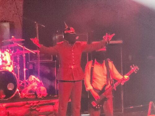 Last up for our first night was a 12:30 am set by the weird and mysterious Kanonenfieber. Support for the band was apparent, with numerous folks onboard rocking plastic versions of the Pickelhaube (the WWI era pointy helmet worn by Prussian and German soldiers), and they’ve received a ton of love and overratings from the AMG staff these past few years. Somehow, though, I never completely bought into what band creator Noise was doing. Until I saw it all done live, that is. With a stage covered in sandbags and barbed wire, the masked trench warriors supporting Noise came out in matching WWI period soldiers’ clothing to play a somber, ominous intro before Noise himself burst out dressed in full Kaiser gear as things erupted into full boar black death insanity. While their style can at times come across as heavier, faster Rammstein, there was no denying how much punch they packed live, and Noise is a very animated, maniacal frontman. He had the crowd eating from his hand despite an entire set in German. Sure, the multiple costume changes were a bit over-the-top, but they fit the narrative of the horrors of war. Thus pummeled and pulverized, it was time to call it a day.