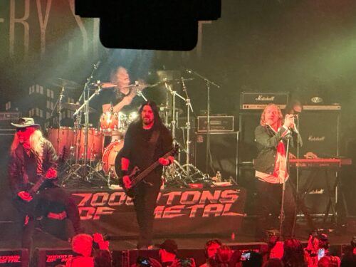 From there we beered up and then caught death metallers Skeletal Remains back in the lounge, and they were appropriately heavy and caveman as fook. Perhaps the caveman shit went too far as they blasted way past their allotted time, and soon thereafter, rumors started spreading that a certain band member was getting hammered and way too touchy-feely with the female cruisers. This ultimately led to him being confined to his cabin and the band getting banned from future 70000 Tons events. After Skeltal Remains decamped, we stayed put in the lounge as up next was none other than the one, the only…Jag Fucking Panzer!! A huge staple of my teen years, these Colorado classic US power metal masters dropped the iconic Ample Destruction back in 1985, and I’ve loved them ever since, but never got to see them live. Because we were hanging around as the band set up, legendary vocalist Harry “the Tyrant” Conklin came over to chat and offered us “Tyrant coins,” which are basically a commemorative Jag Panzer challenge coin. We took them happily, and I tried not to be too fanboyish. I also got to speak with founding guitarist Mark Briody, and he was as nice a guy as there is. When Panzer took the stage, they proceeded to rip the crowd a new one with a string of timeless cuts from Ample Destruction and select gems from their later releases. I was floored by how powerful Tyrant’s voice was live, and this was my highlight of the trip thus far. I was very glad we were dead center front row for this one!